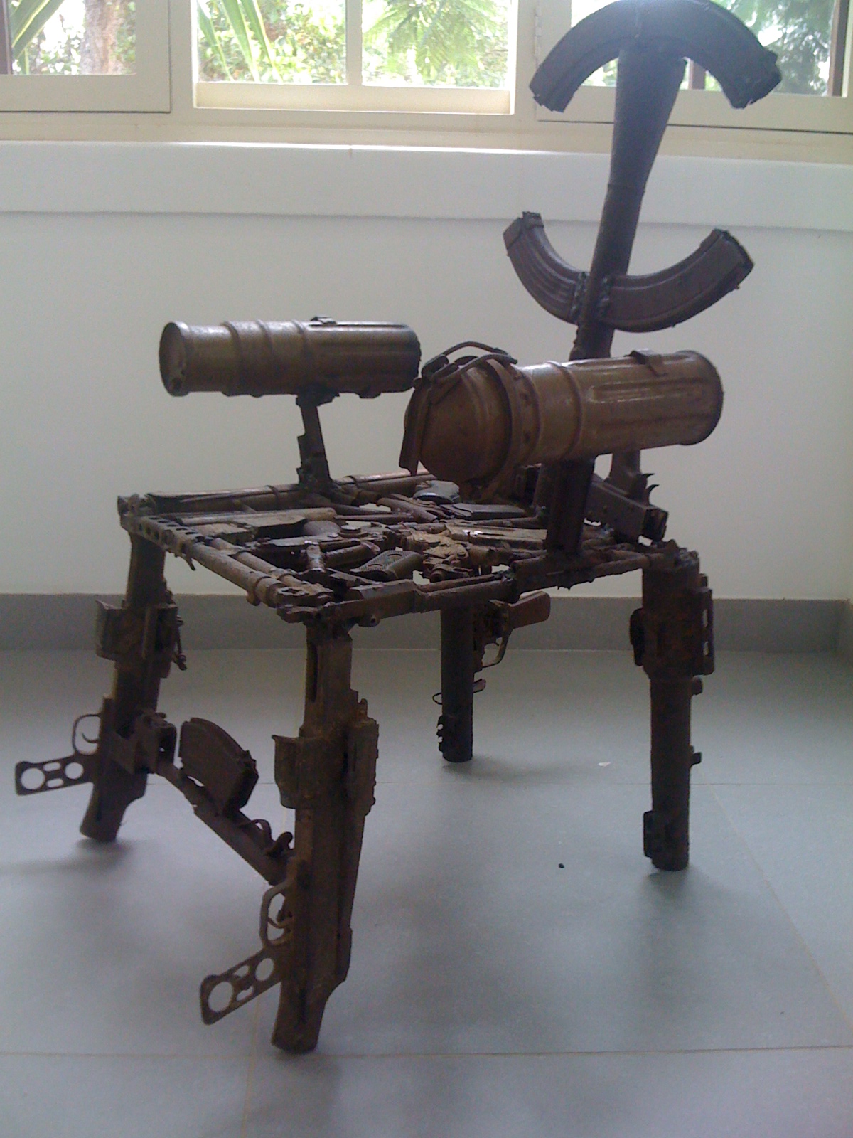 I reached Maputo the next morning, as I was told, and spent my time sitting in cafés, sipping strong espresso and eating Portugese pastries (pastel de nata). I also checked out a great local art museum, which looked more like someone’s flat, called Nucleo de arte. It contained a haunting sculpture, a chair made of discarded M-16’s and AK-47’s from the brutally long civil war that gripped Mozambique from 1977-1992 (democratic elections held in ’94).