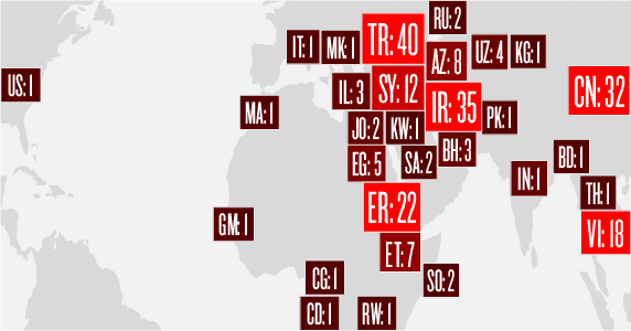 For the second year in a row Turkey is known as the world’s leading jailer of journalists with 40 behind bars, even though nine more were released this year than last. New legislation in Turkey allows journalists to be released for time served during lengthy pre-trials. As of December 1, 2013, Turkey also released additional journalists after CPJ completed its prison census.