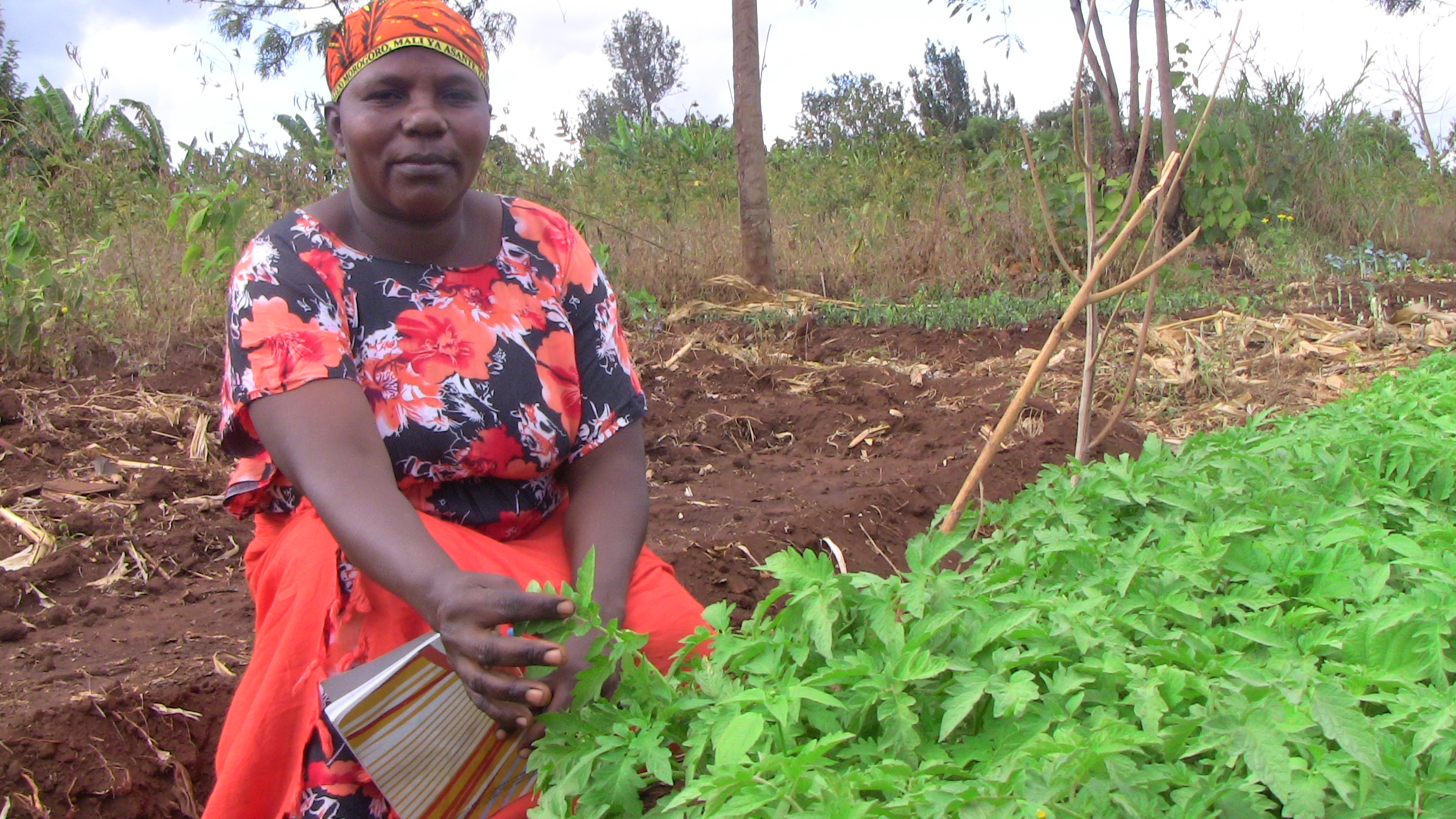 Mrs. Pascal works with a group of 70 farmers. She trains them to intercrop vegetables and fruits and use manure to maximize yields on their small parcels of land.
