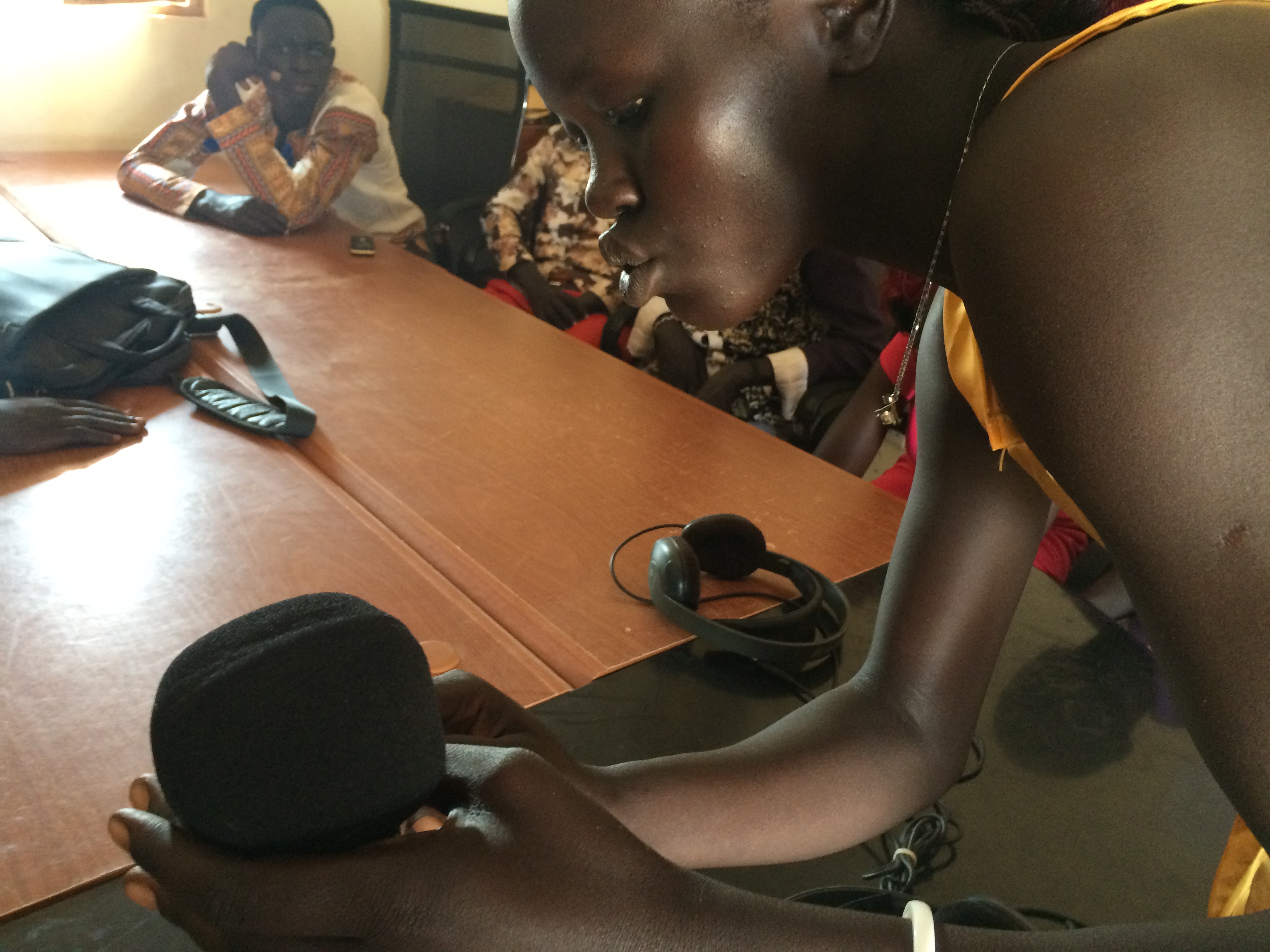 Josephine explains in Dinka how to use the recorder